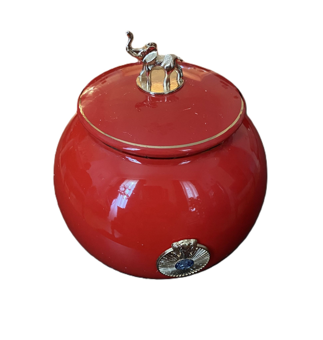 BOMBONIERE PORCELAINE ROUGE ET DOREE ELEPHANT