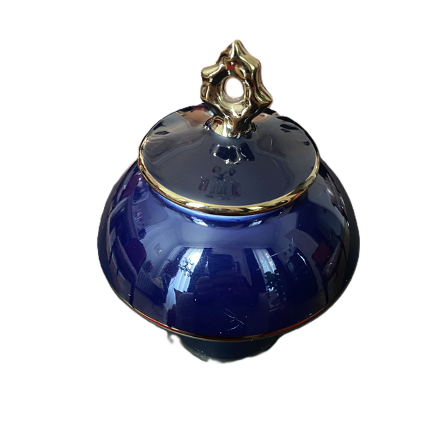 BOMBONIERE PORCELAINE BLEU MARINE ET DOREE