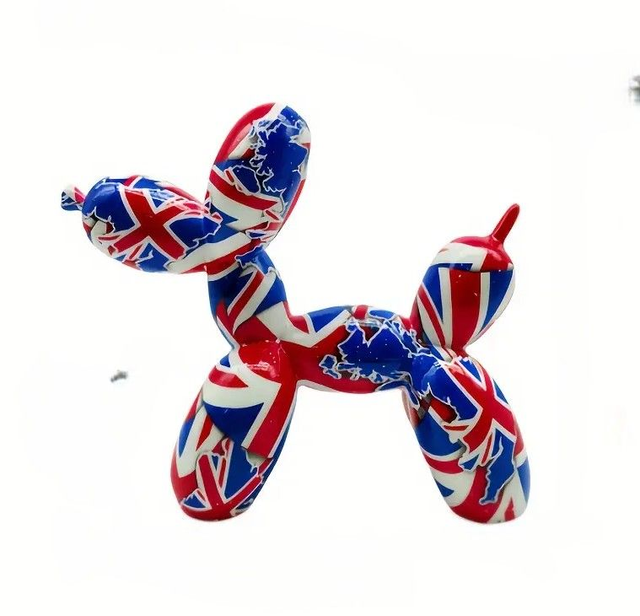 CHIEN BALLON RESINE MOTIF UNION JACK
