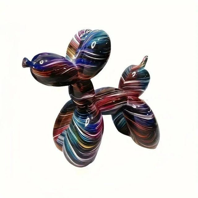 CHIEN BALLON RESINE MOTIF NOIR RAYE COULEUR NEON