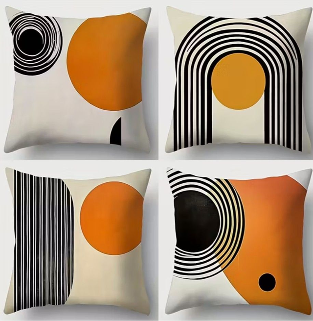COUSSIN VINTAGE MOTIF ORANGE ET NOIR 45*45