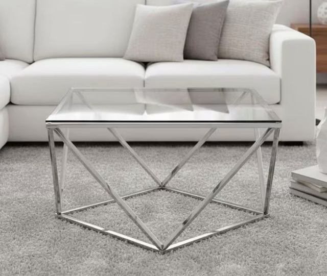 TABLE BASSE METAL ARGENT ET VERRE