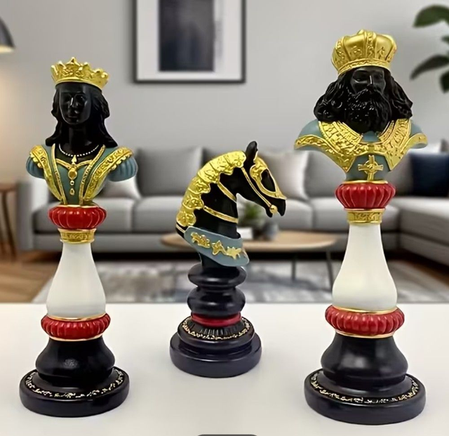 TRIO DE PIECE ECHECS VINTAGE EN RESINE